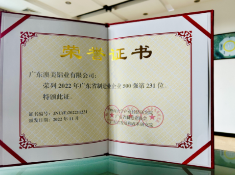近日,在廣東省制造業(yè)協(xié)會發(fā)展年會暨廣東省制造業(yè)500強(qiáng)企業(yè)峰會上,公司獲評為2022年廣東省制造業(yè)500強(qiáng)企業(yè),位列第231位。該榜單通過公開數(shù)據(jù)采集調(diào)查及核實等方式獲取年度數(shù)據(jù),并由主辦方組織專家對申報企業(yè)進(jìn)行實地考察,按照入圍條件和參照國際通行評價準(zhǔn)則,經(jīng)評審專家委員會審定發(fā)布。